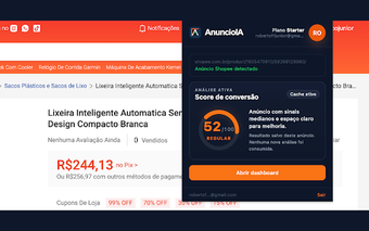 AnuncioIA é uma extensão gratuita para o navegador Chrome que utiliza inteligência artificial para analisar anúncios da plataforma Shopee. Com essa ferramenta, os usuários podem visualizar o score de conversão em tempo real de qualquer anúncio, permitindo uma avaliação rápida e eficiente da qualidade dos produtos. A extensão considera diversos fatores, como título, preço e reputação do vendedor, proporcionando uma visão abrangente sobre o desempenho do anúncio.